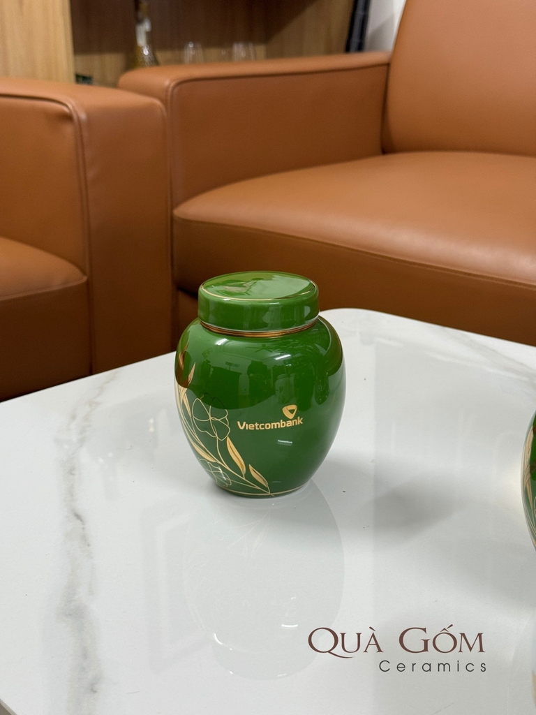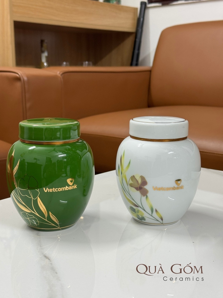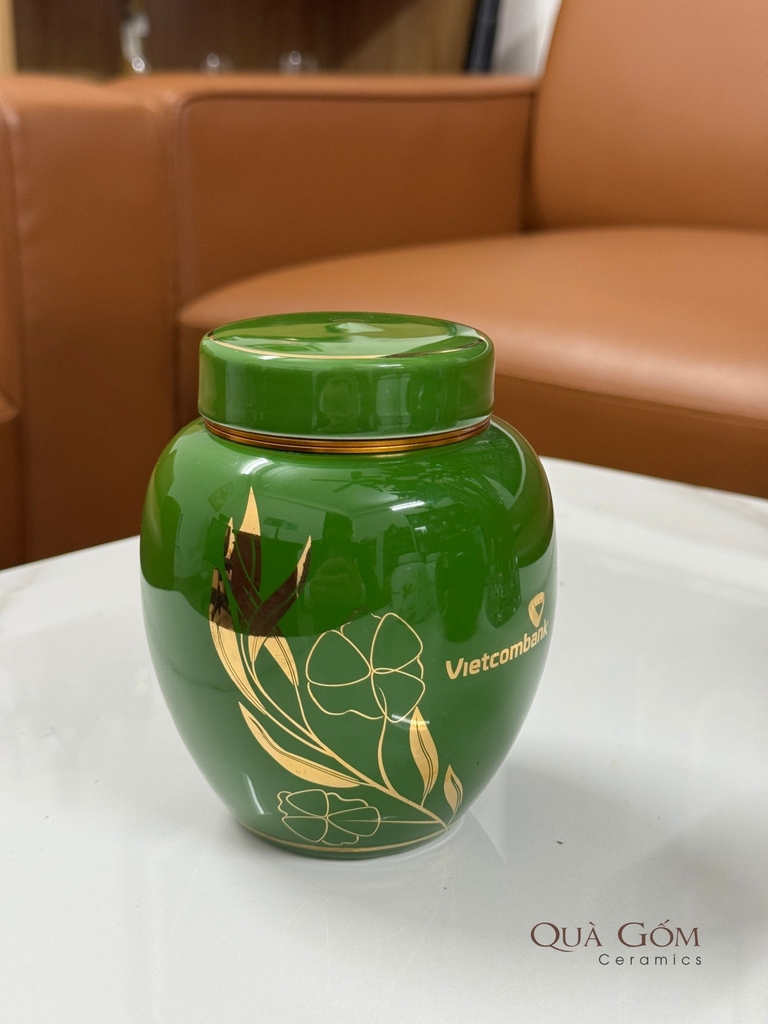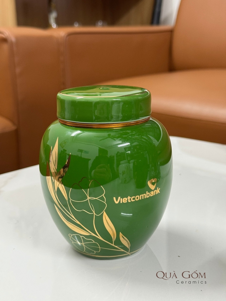 Bình đựng trà sứ họa tiết vàng kim Vietcombank