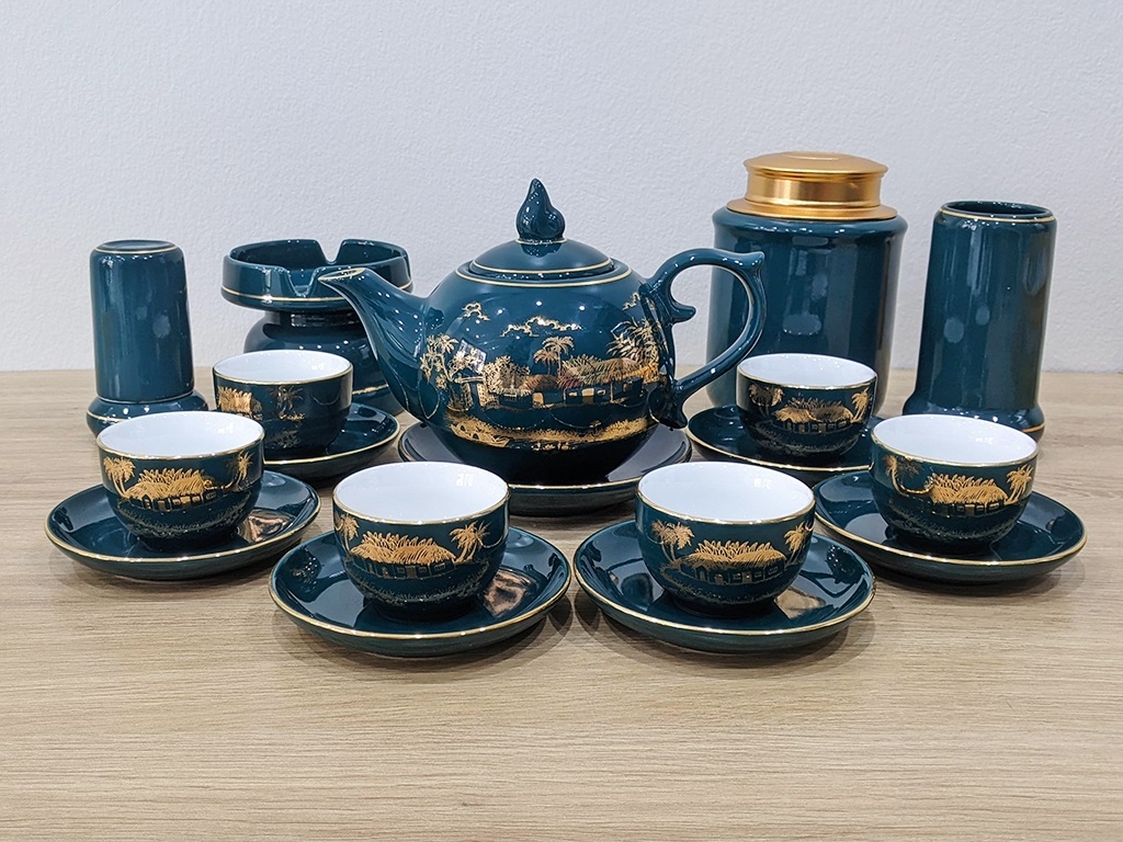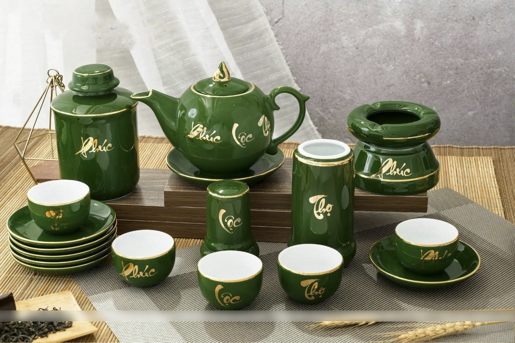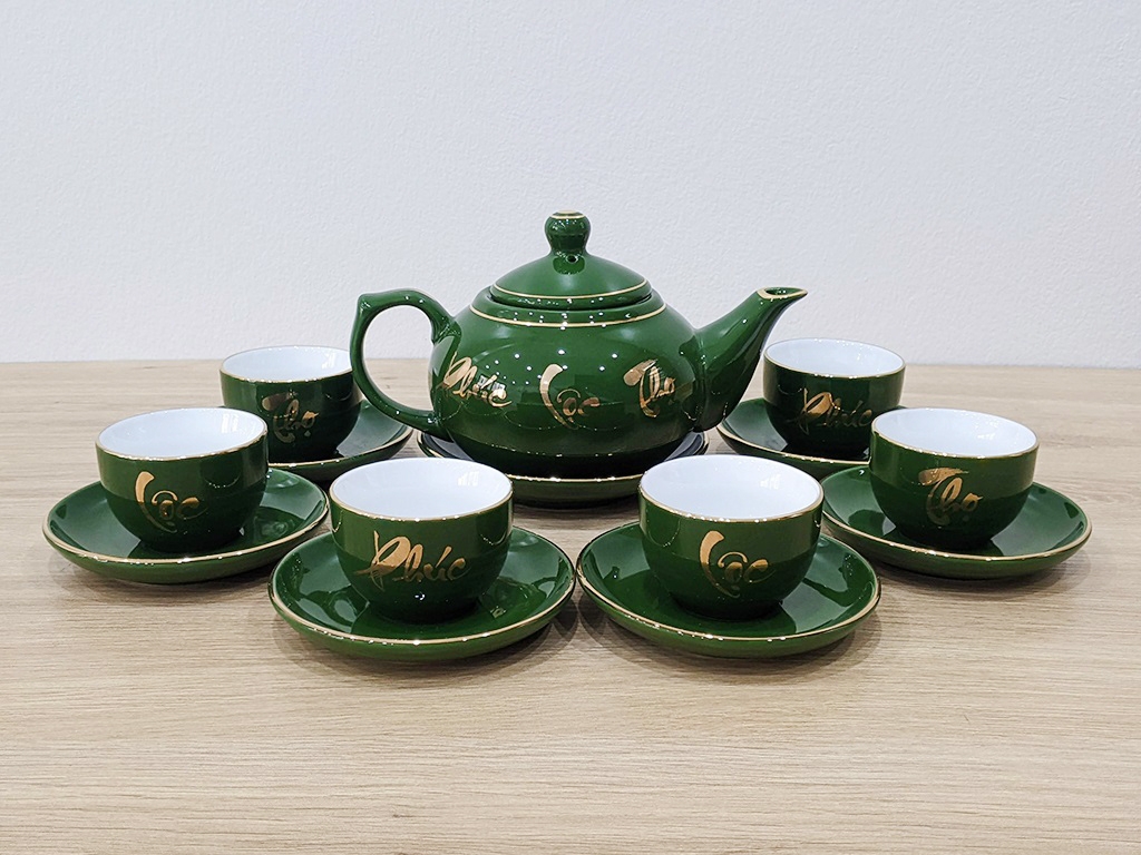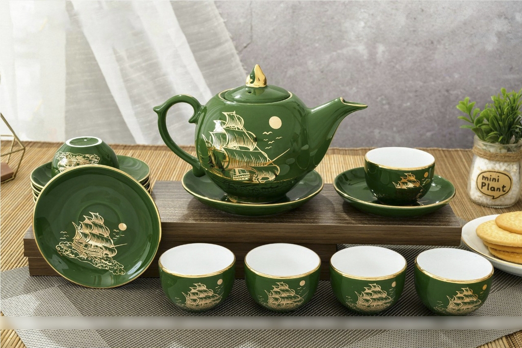 Bộ ấm chén men xanh lục bảo, men xanh cổ vịt