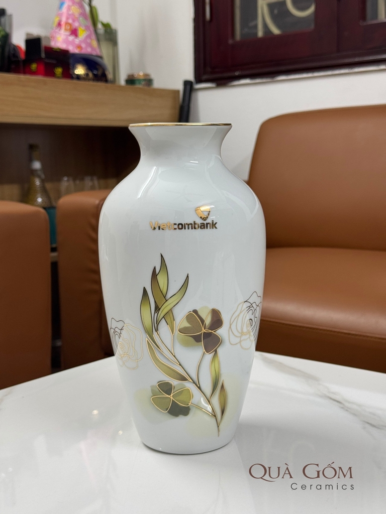 Lọ hoa sứ họa tiết vàng kim Vietcombank
