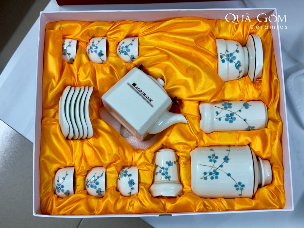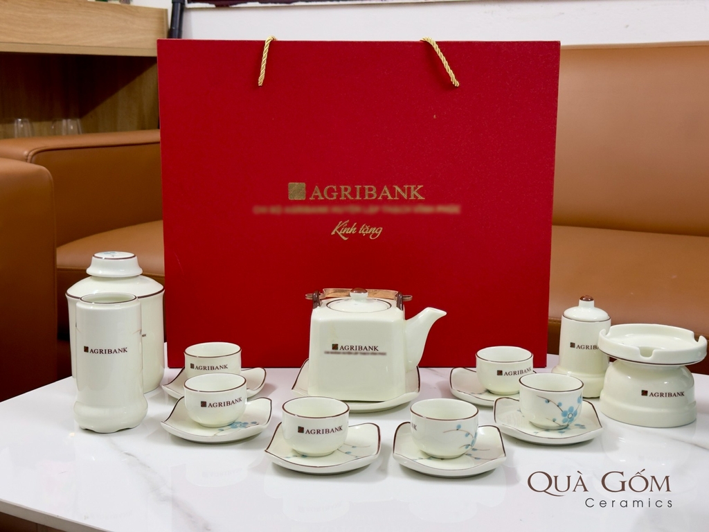 Set quà tặng bộ ấm chén sứ và phụ kiện đầy đủ Agribank